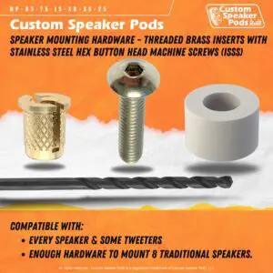 Easy Speaker Installation – Threaded Brass Inserts with Stainless Steel Hex Button Head Machine Screws (Qty 25)