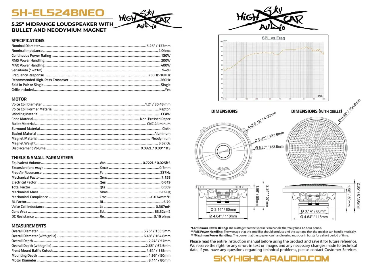 Sky High Car Audio SH-EL524BNEO 5.25″ Neodymium Bullet Midrange Speaker