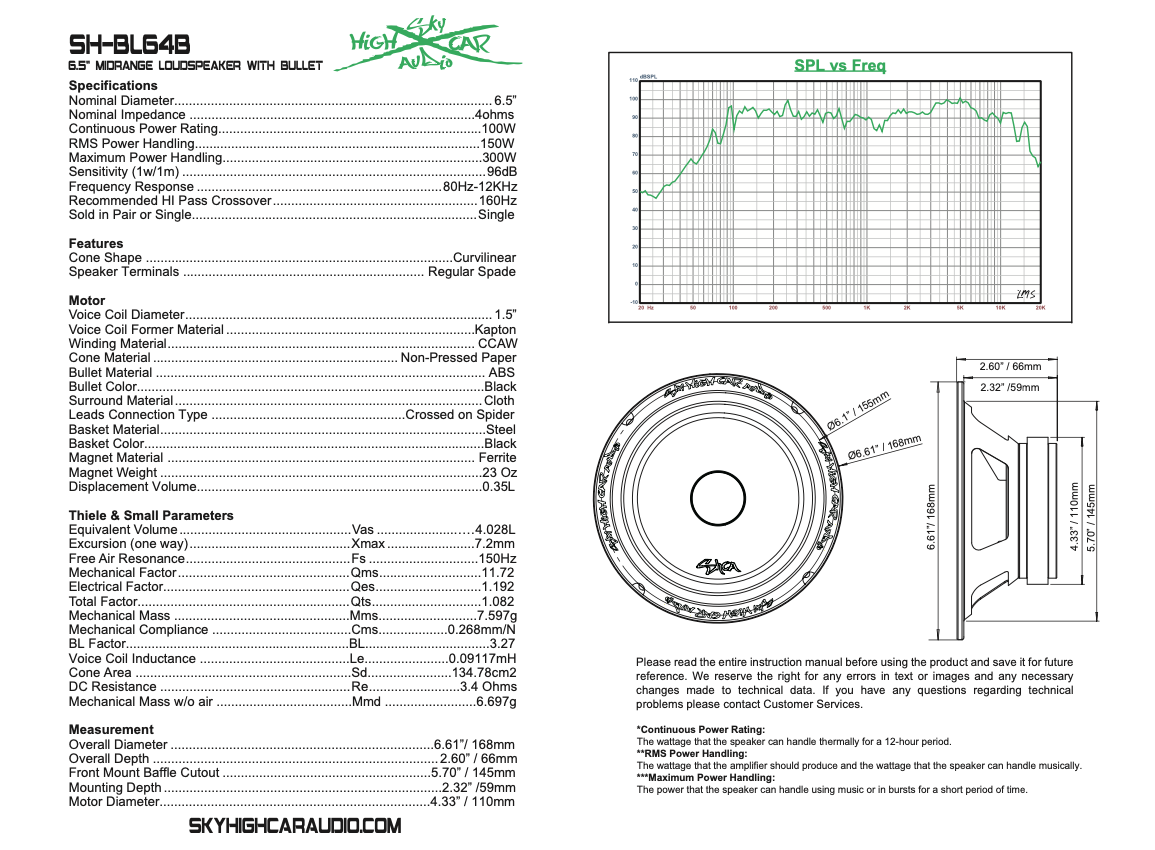 Easy to install and compatible with a wide range of car audio systems, the SH-BL84 is not just a speaker; it’s an investment in unparalleled audio quality that transforms every drive into an unforgettable listening experience. Experience the difference with Sky High Car Audio’s commitment to excellence with the SH-BL64B midrange loudspeaker.