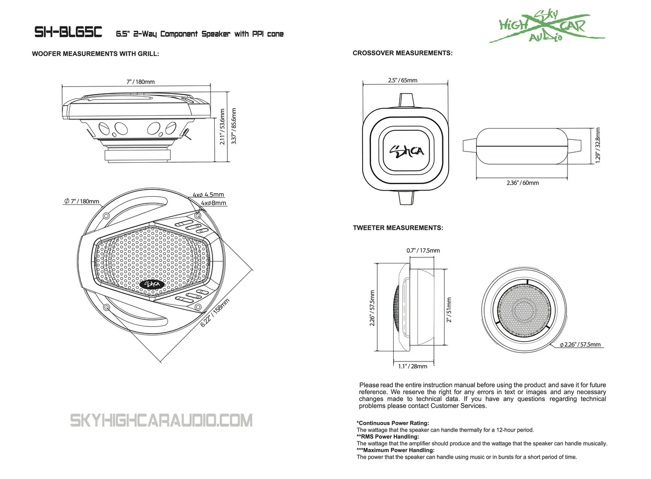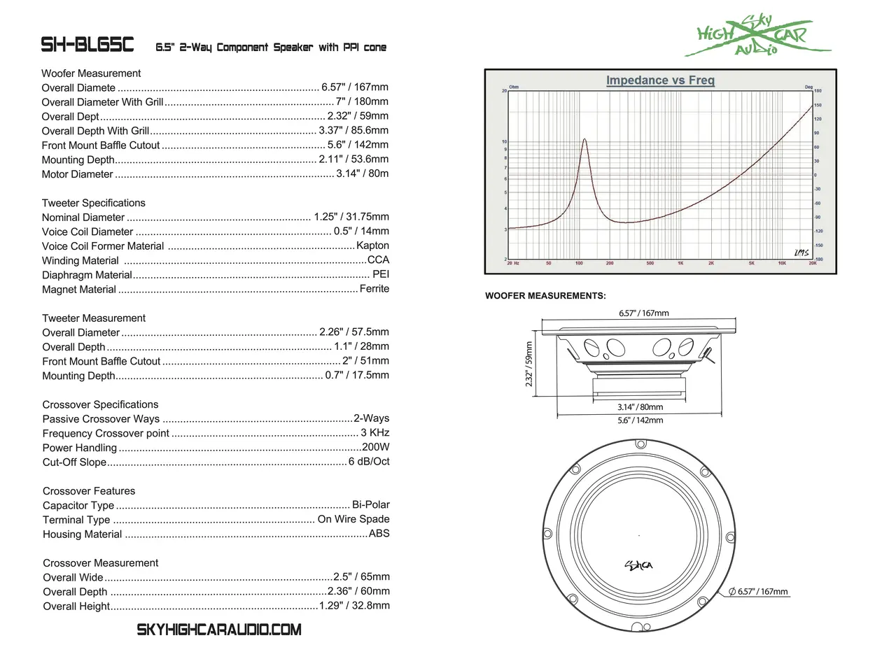 Introducing the Sky High Car Audio SH-BL65C 6.5″ 2-Way Component System – where precision meets power for an unmatched audio experience.