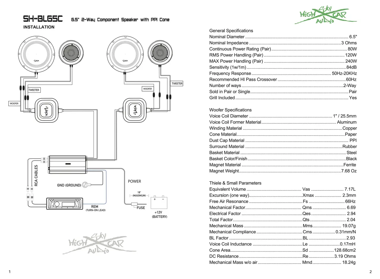 Delivering a robust 120-watt rating per pair, these speakers strike the perfect balance, offering a harmonious blend of power and precision. Elevate your driving soundtrack with the Sky High Car Audio SH-BL65C – where advanced technology meets unparalleled sound quality. Upgrade your car audio system and immerse yourself in a new dimension of musical enjoyment.