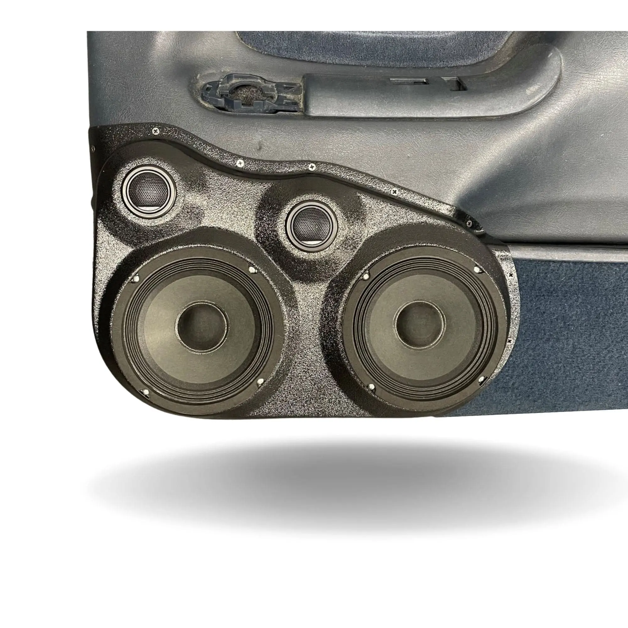 B-STOCK Dual 6.5″ and Dual Tweeter Speaker Pods for the Front Door of a 95-99 GM Full Size Truck in Black with Carbon Fiber Finish