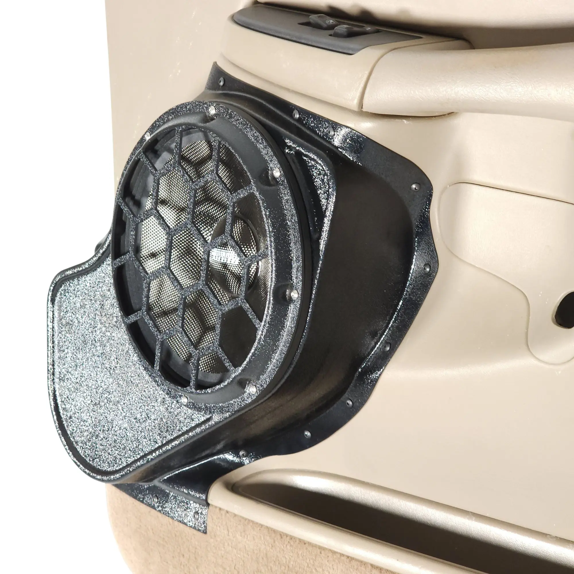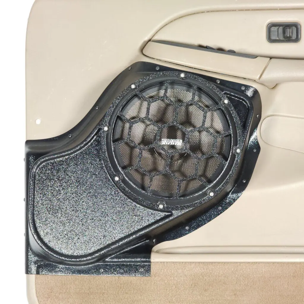 B-STOCK 10″ Front Door Speaker Pods for the 2000-2006 Chevrolet Avalanche, Tahoe, Suburban, Silverado, GMC Yukon, Sierra & Cadillac Escalade (DISCONTINUED DOUBLE THICK WALL; ULTRA DURABLE BLACK GRAINED TEXTURE FINISH)