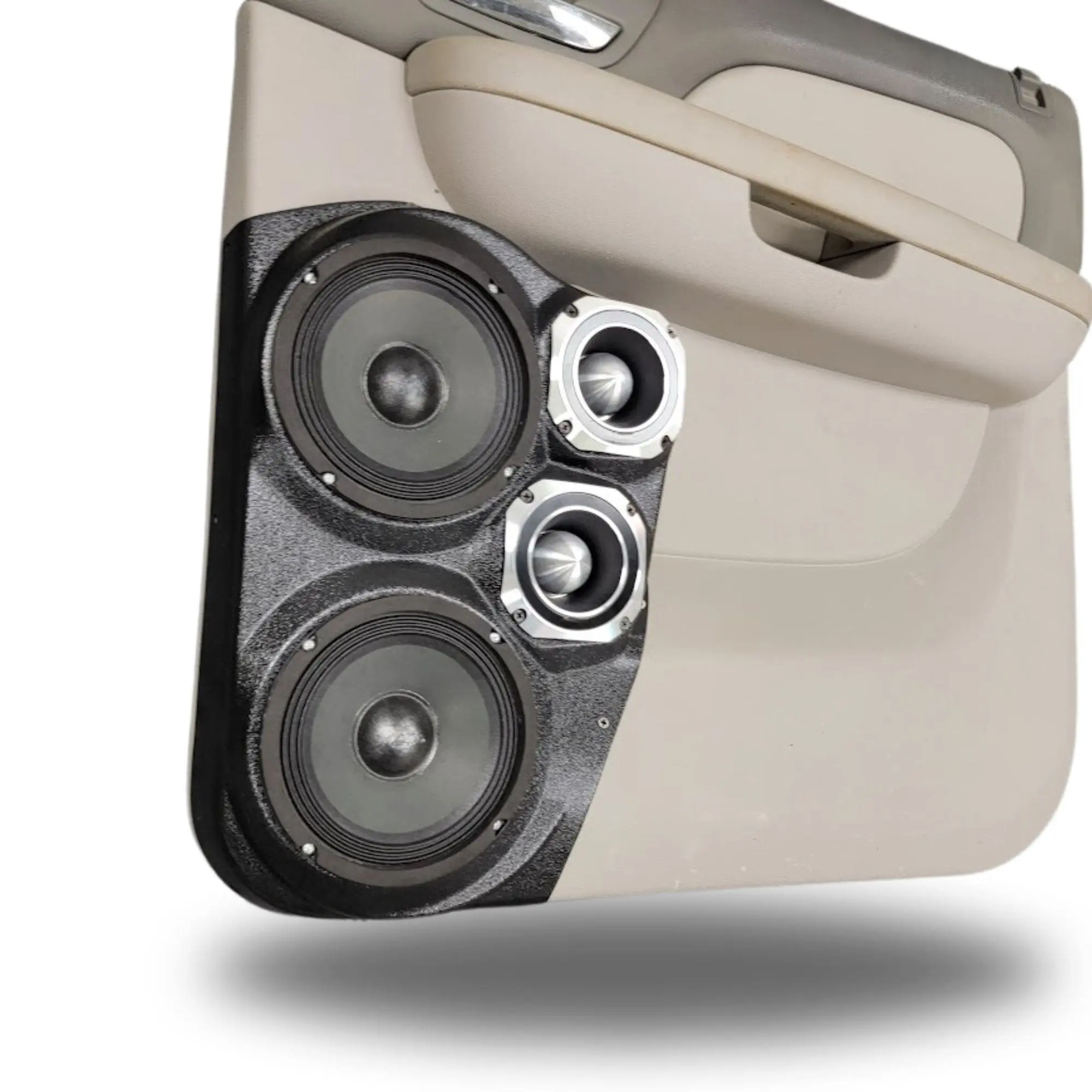 B-STOCK Dual 6.5″ and Dual 3.5″ Rear Door Speaker Pods for the 2007-2013 Silverado, Sierra & 2007-2014 Avalanche, Escalade, Tahoe, Suburban & Yukon *UPPER HANDLE* (BLACK GRAINED TEXTURE FINISH)