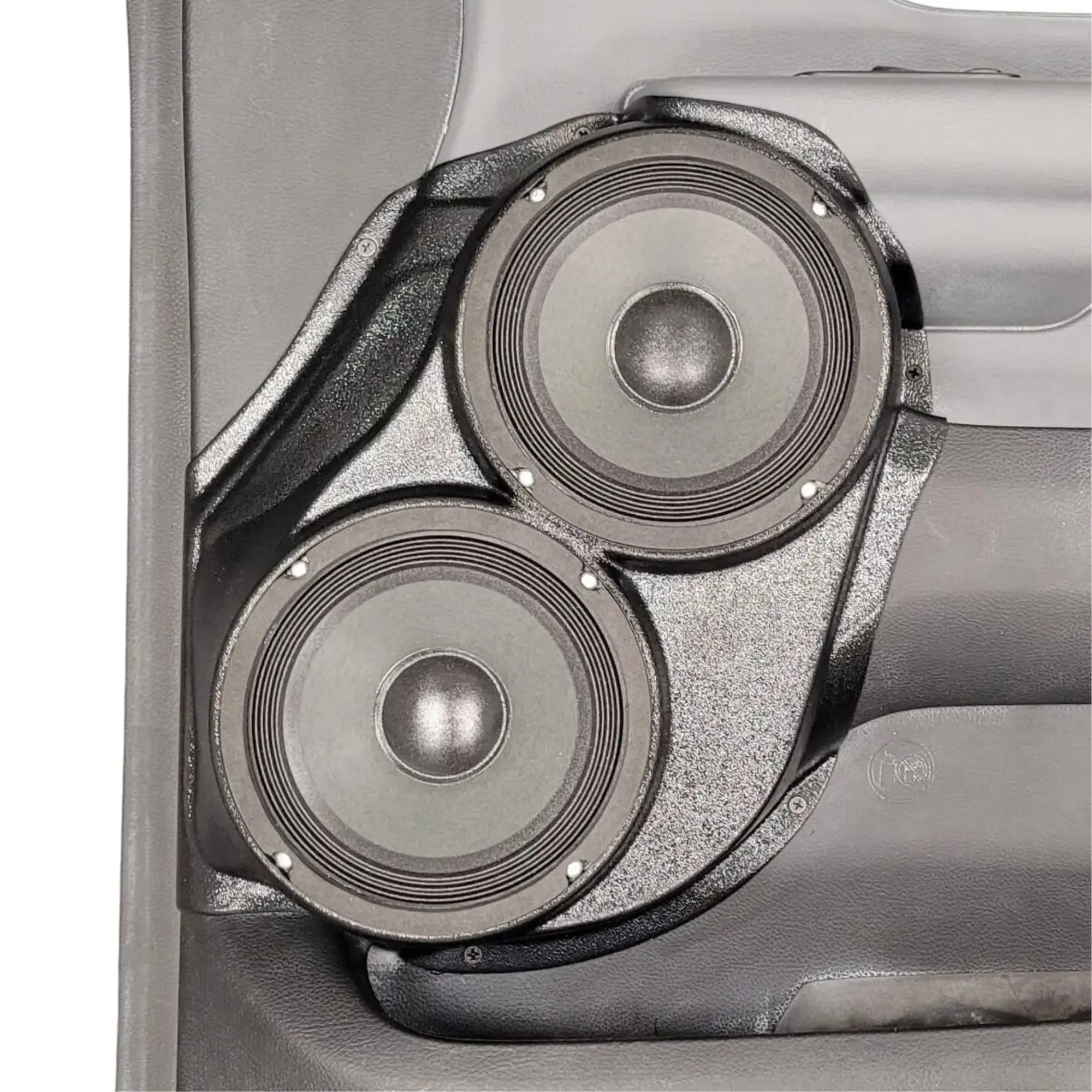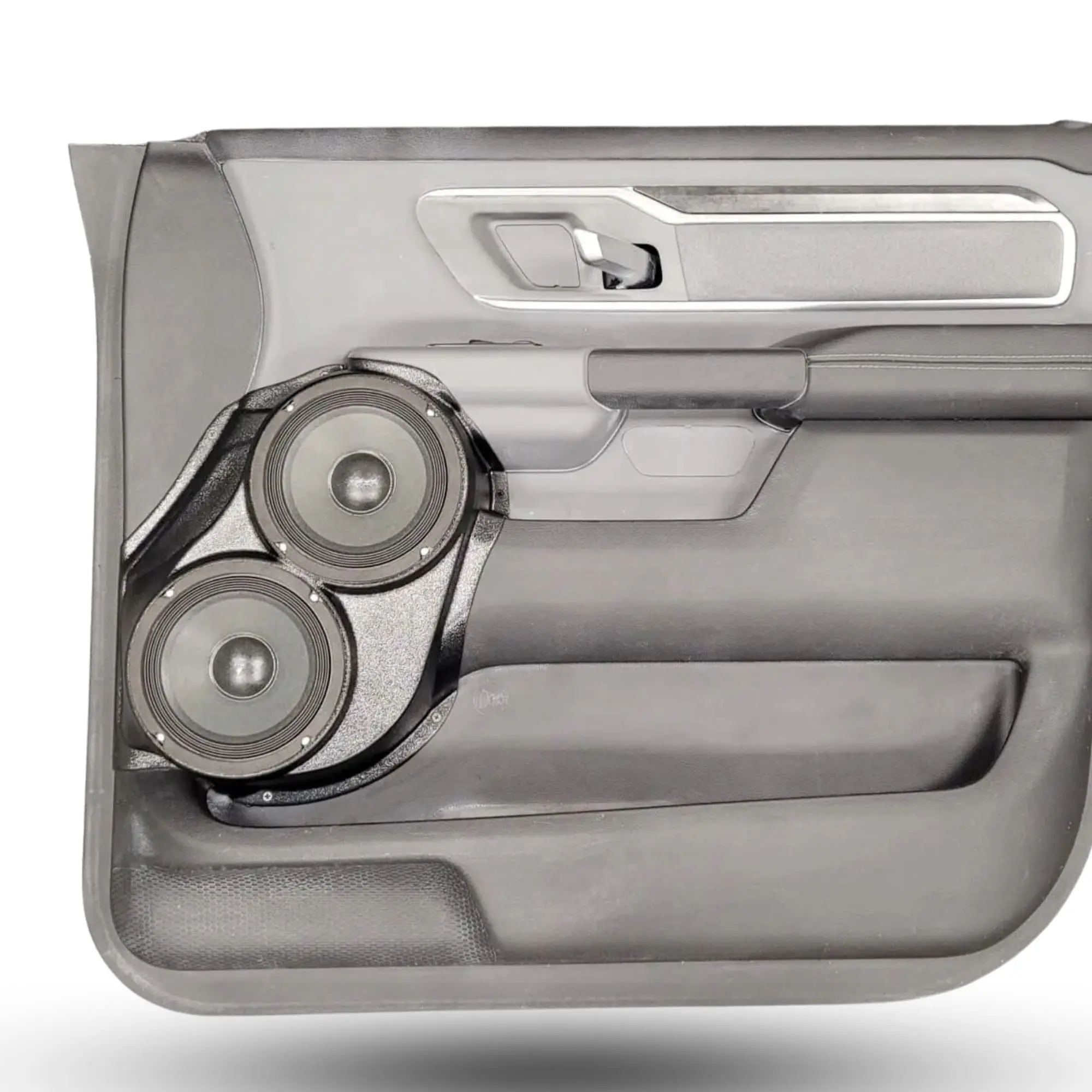 B-STOCK Dual 6.5″ Front Door Speaker Pods for the 2019-2025 Dodge Ram 1500 (DISCONTINUED DOUBLE THICK WALL; ULTRA DURABLE BLACK GRAINED TEXTURE FINISH)