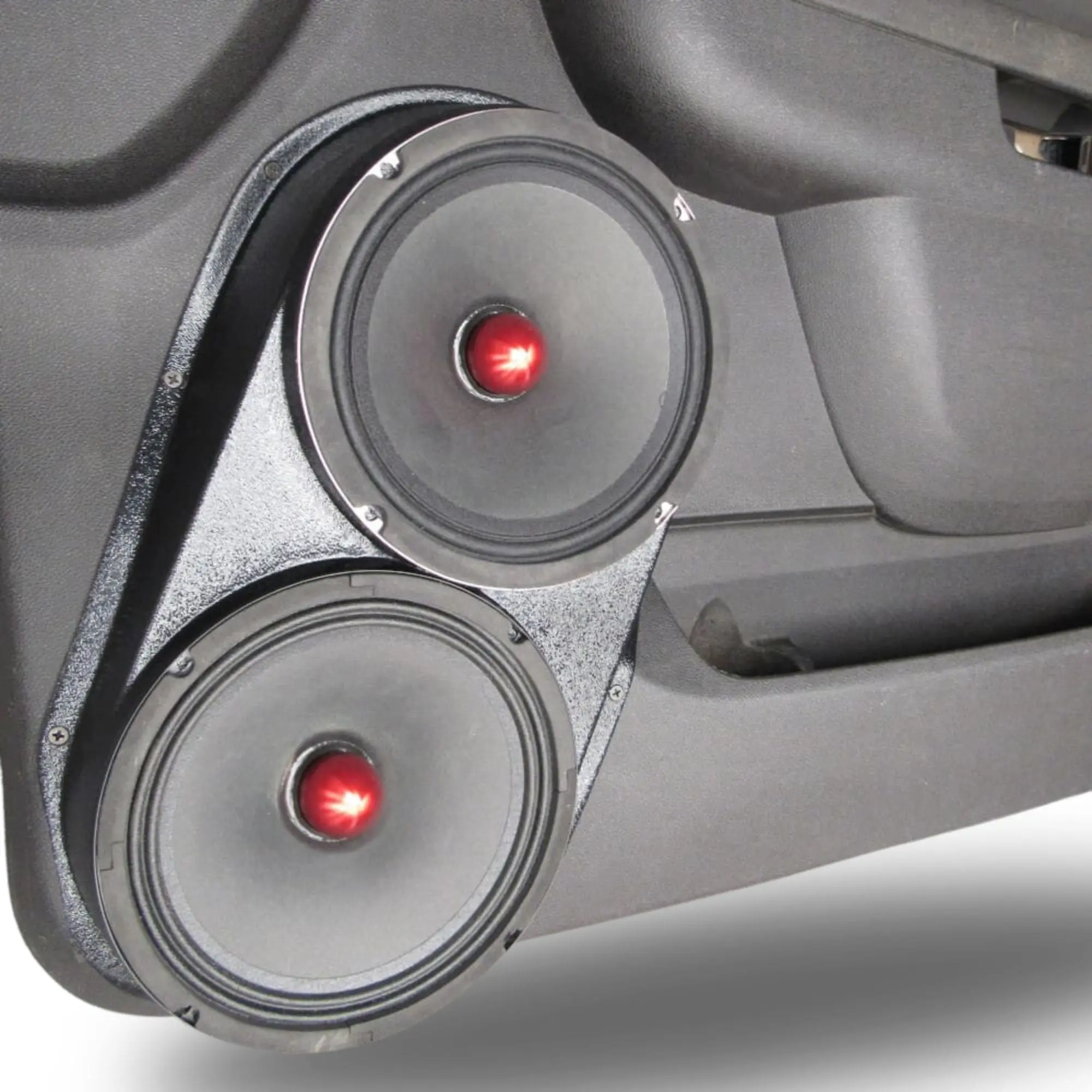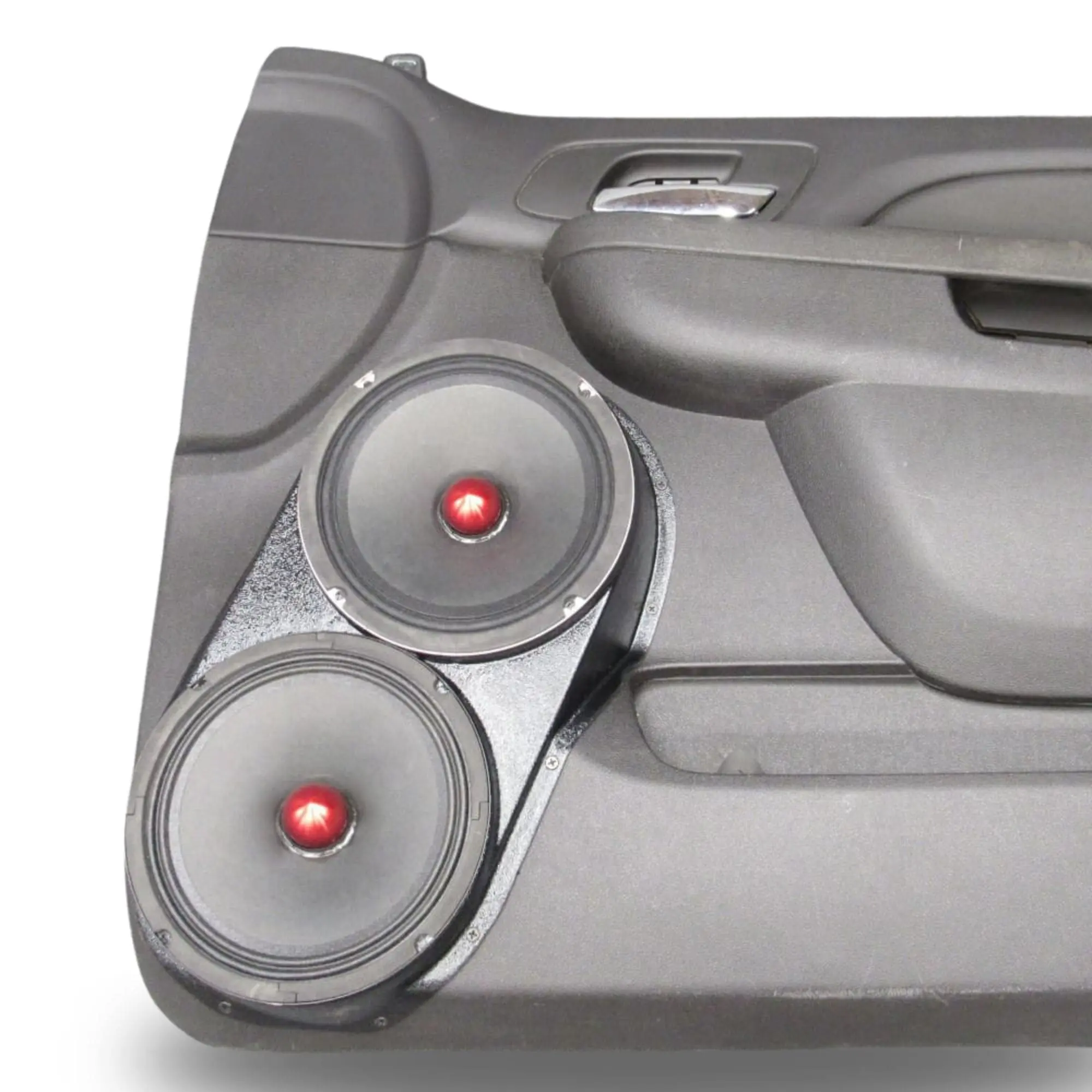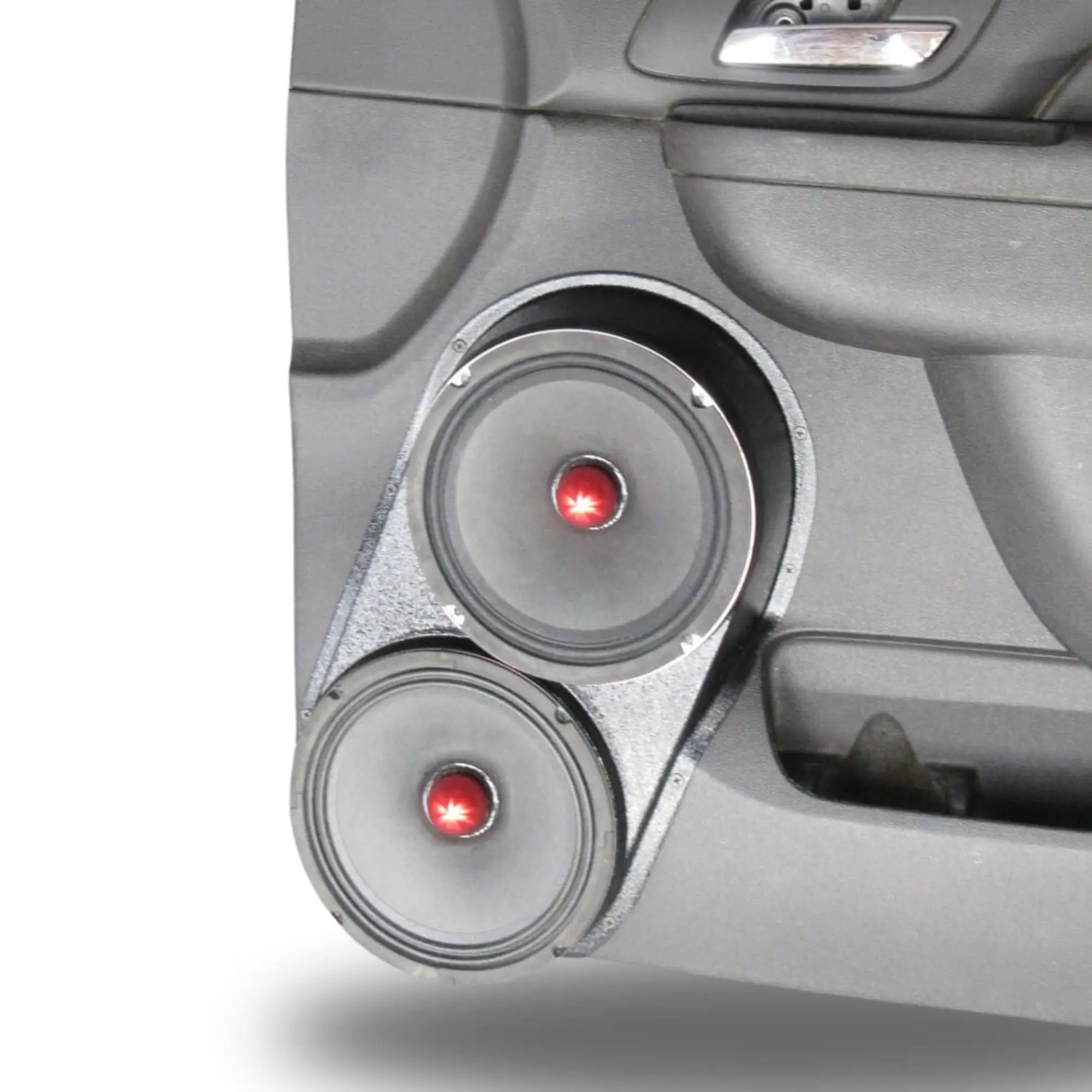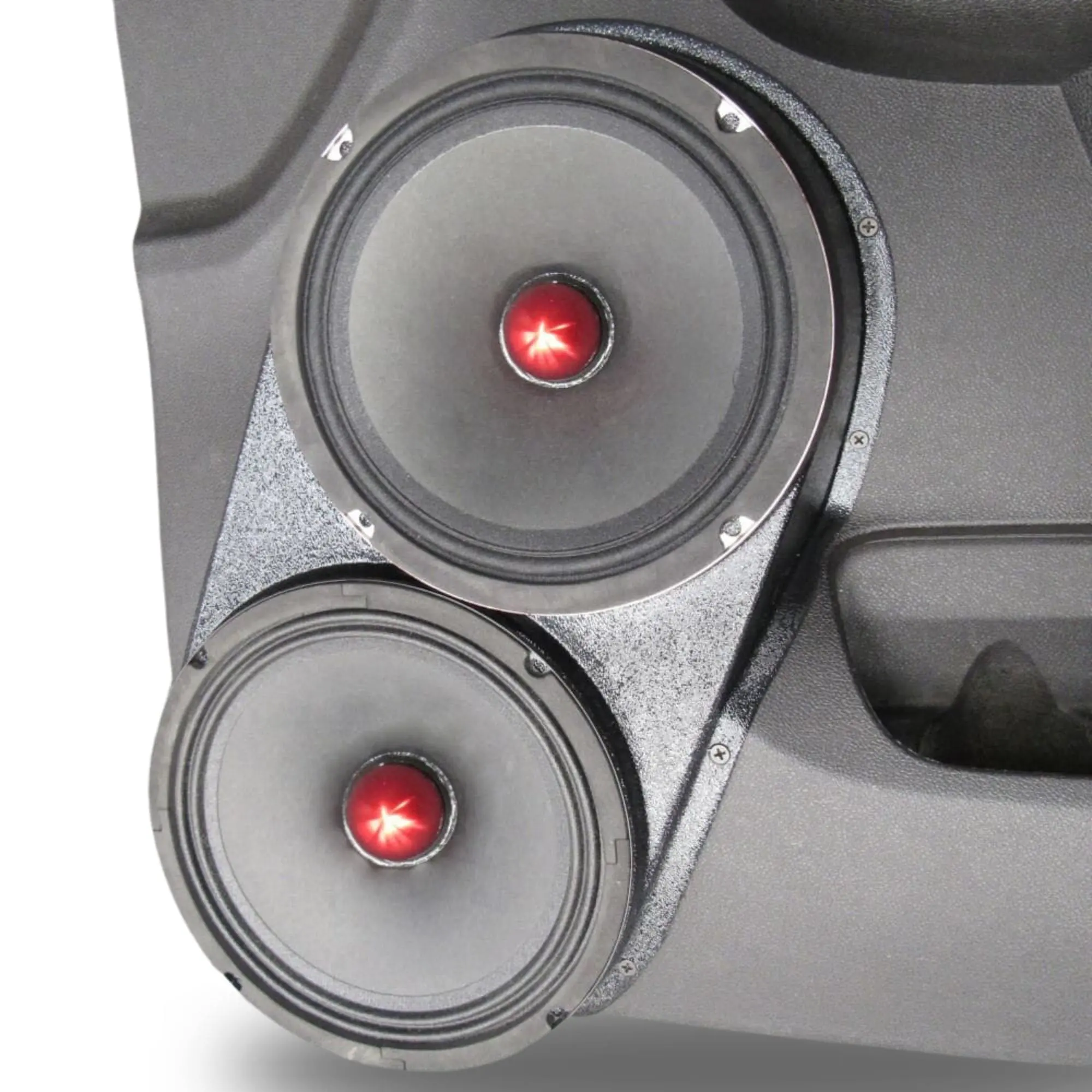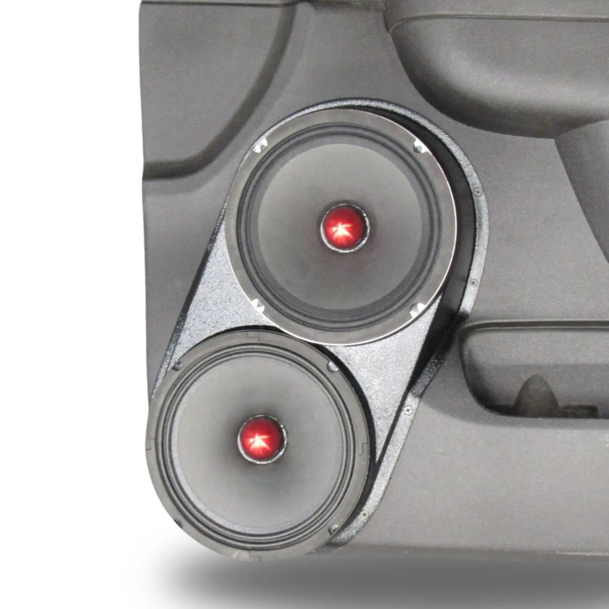 B-STOCK Dual 8″ Speaker Pods for the Front Door of a 10-14 GM Full Size Truck Upper Handle With Black Grained Finish