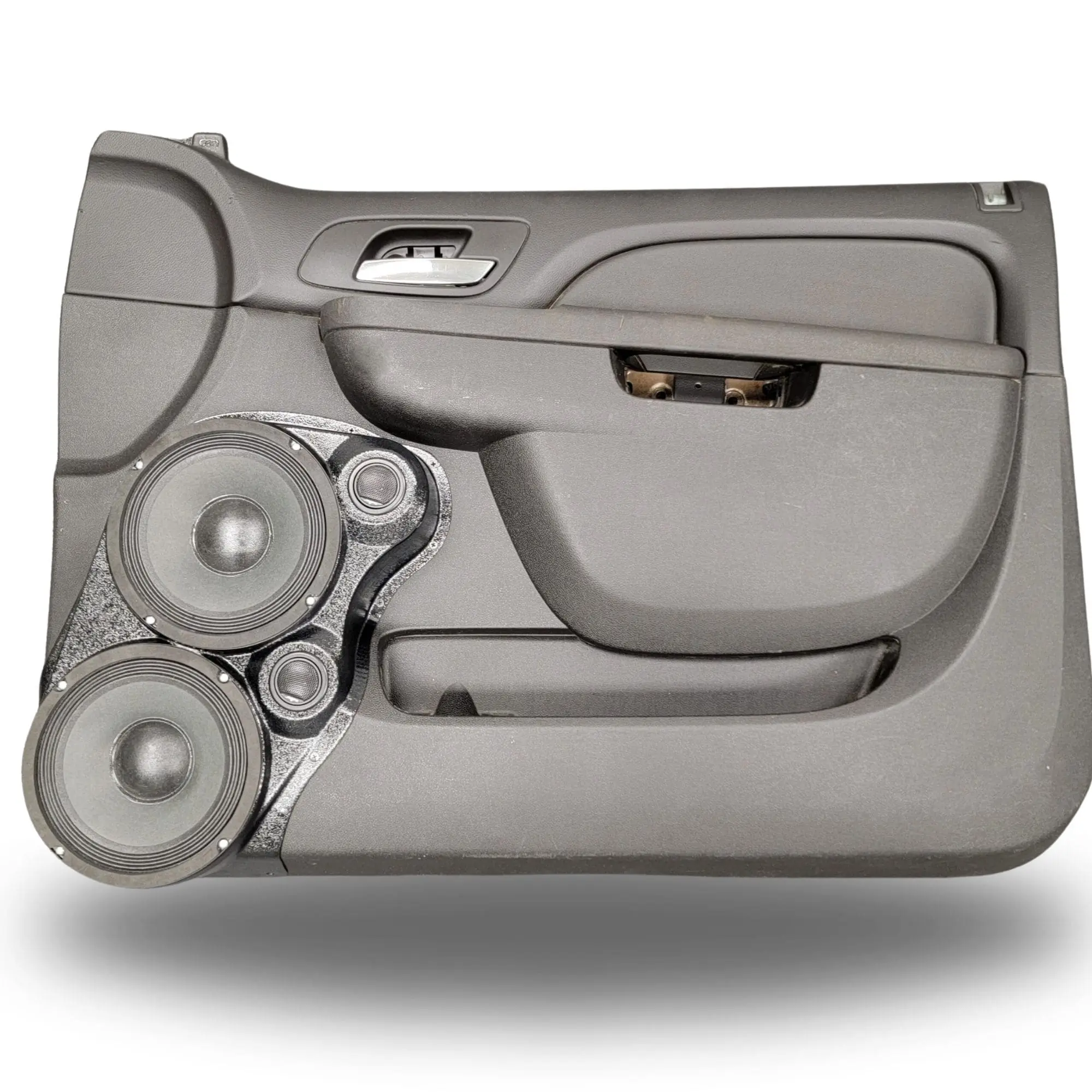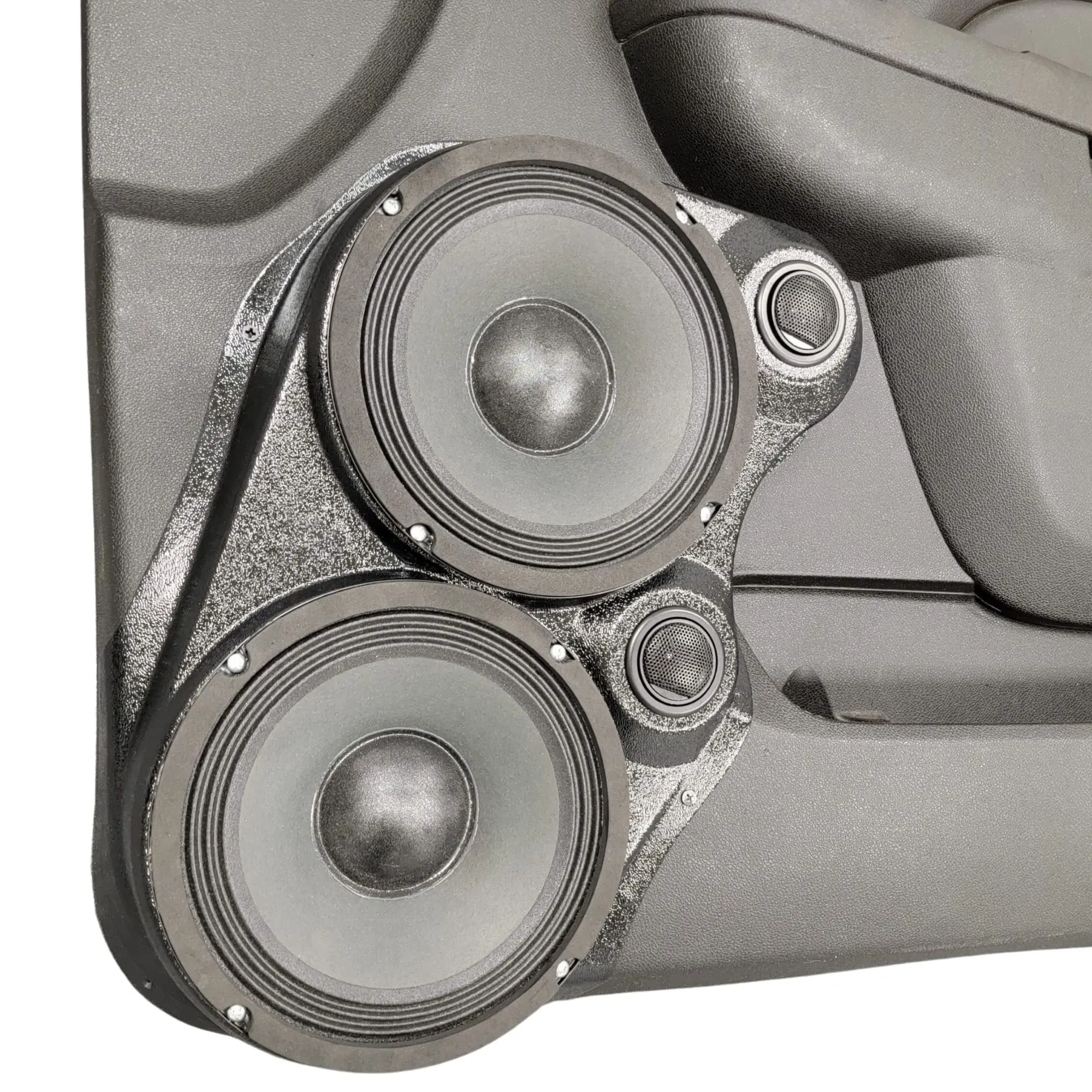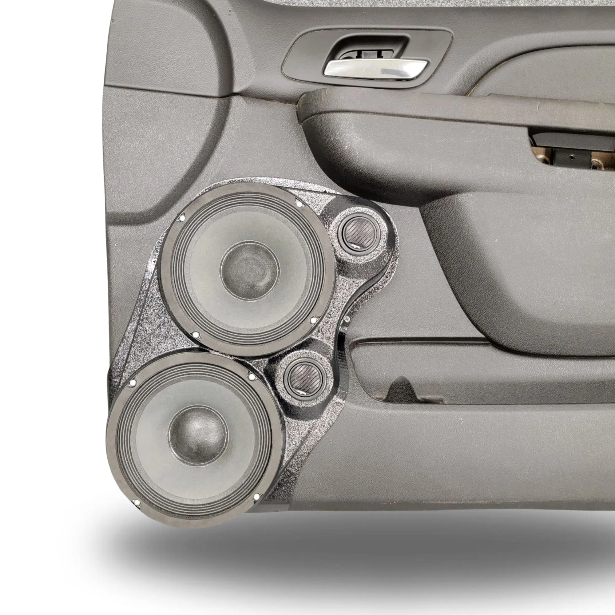 B-STOCK Dual 8″ + Dual 2″ Tweeter Front Door Speaker Pods for the 2010-2013 Chevrolet Silverado, GMC Sierra, 2010-2014 Chevrolet Avalanche, Tahoe, Suburban, GMC Yukon & Cadillac Escalade *UPPER HANDLE* (WHITE SMOOTH FINISH)